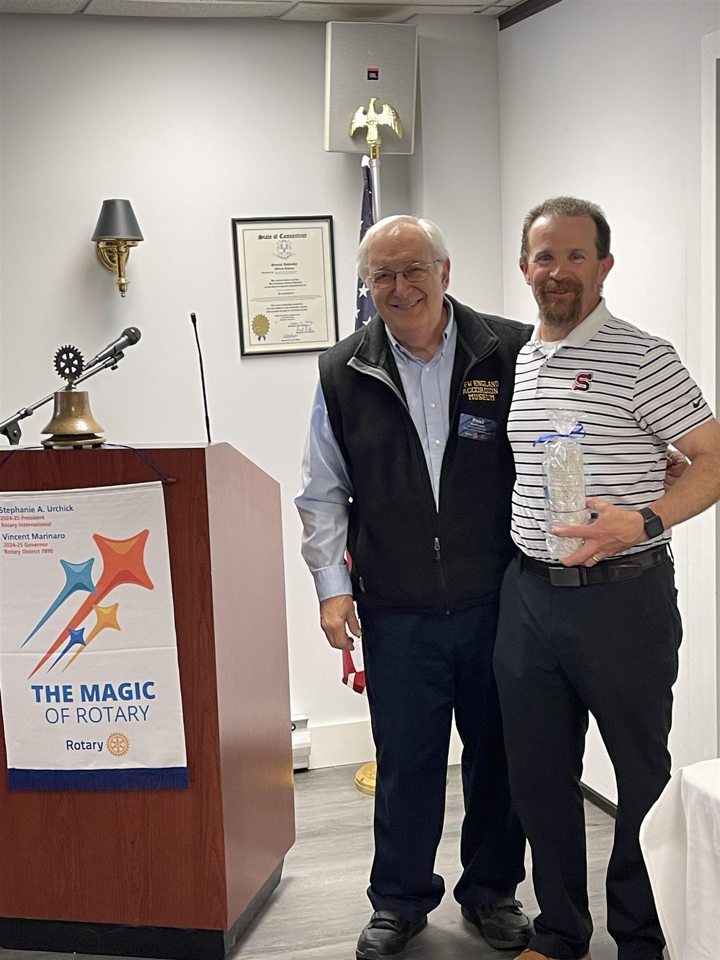 Past President John Hedbavny welcomed Digby Brown, now a Noble Horizons’ resident and former SRC member, and led a recognition of Digby’s years of service to the Club and the community.  A Past President of the Club (2007-08) and past Chair for some 15 years of the Club’s July 4 Fireworks @ Lime Rock Park, the Club’s largest annual fundraiser, and additional leadership roles were recognized.